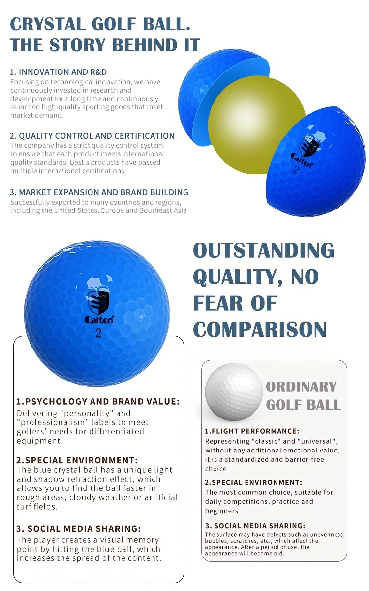 ● -Clear Finish for Enhanced Visibility – These Caiton golf balls feature a -clear finish and vibrant blue color, making them highly visible on the course, ensuring you never lose sight of your ball.