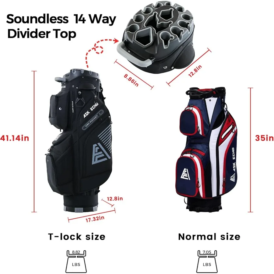2024 T-Lock Golf Cart Bag with 14-Way Organizer Divider Top Premium Cart Bag