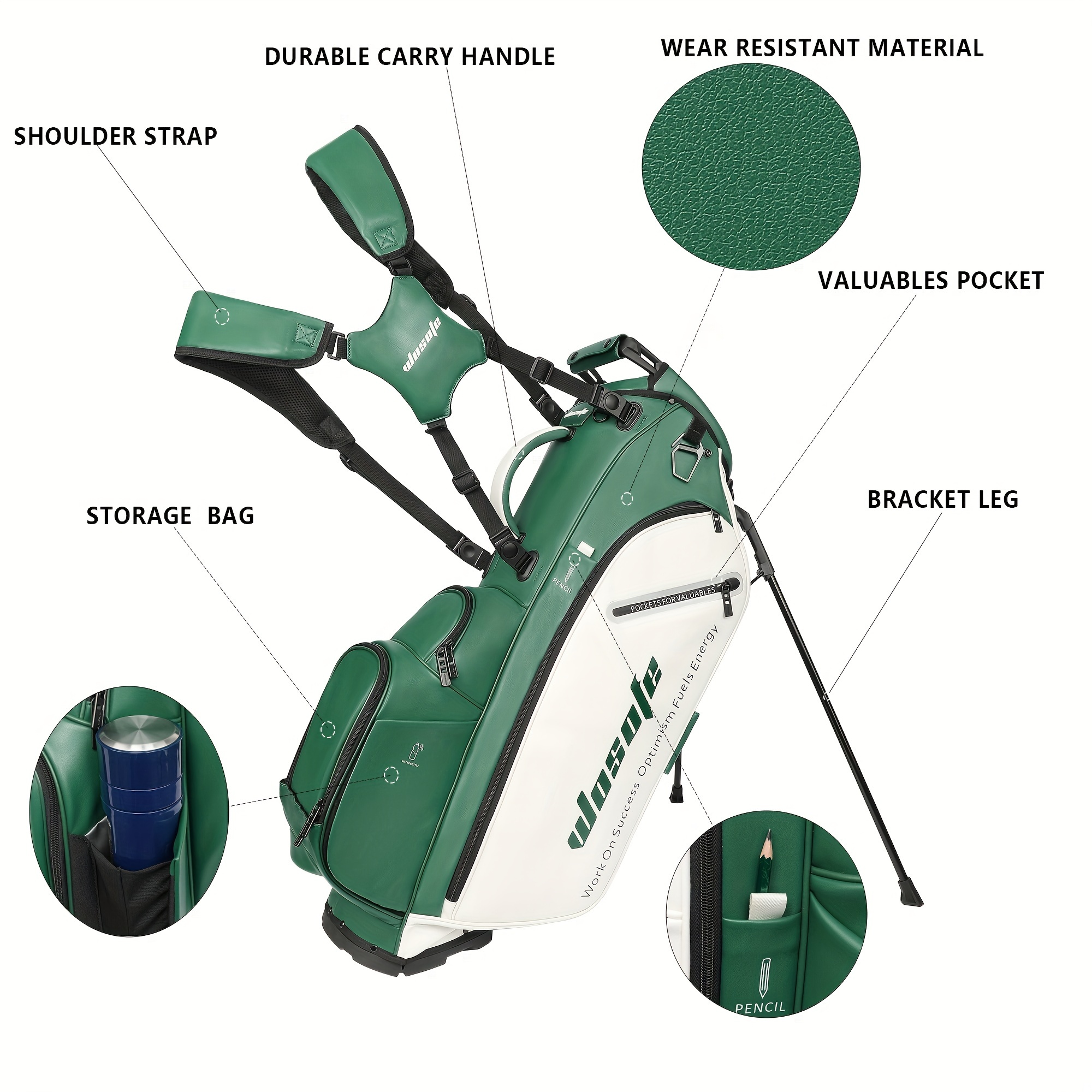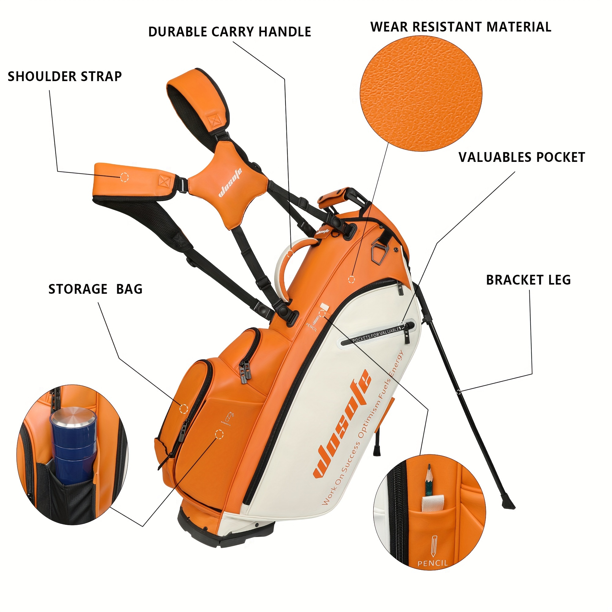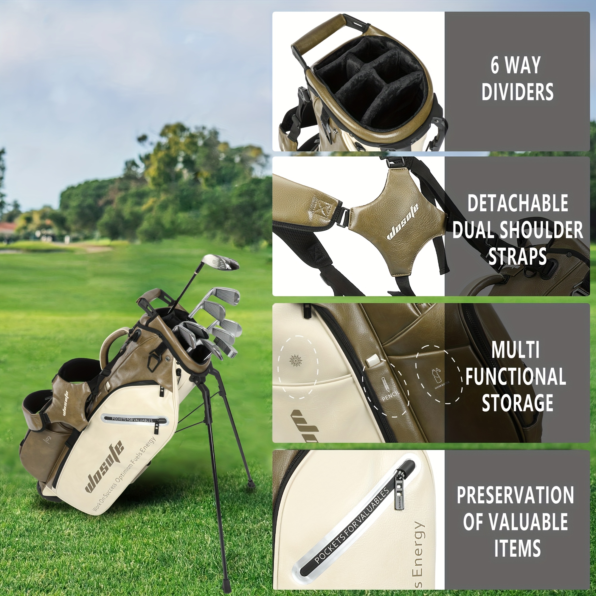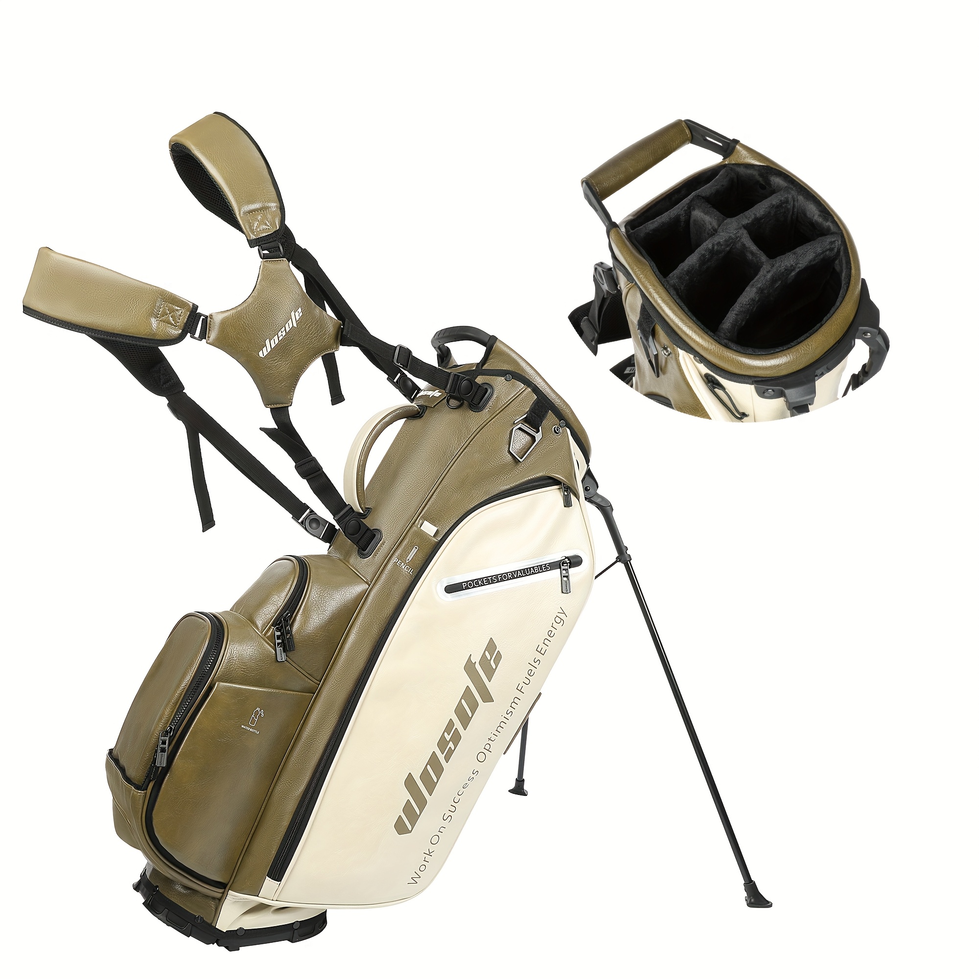 Product Name: Golf Stand Bag, Material: PU, Color: Orange, Gray-Green, Green, Brown, Khaki, Weight: 5000g