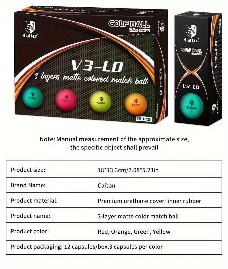 ● Suitable for All Occasions: Whether for daily practice or official tournaments, Caiton colorful matte golf balls meet your needs, with packaging options of 12/3 pcs for your convenience.