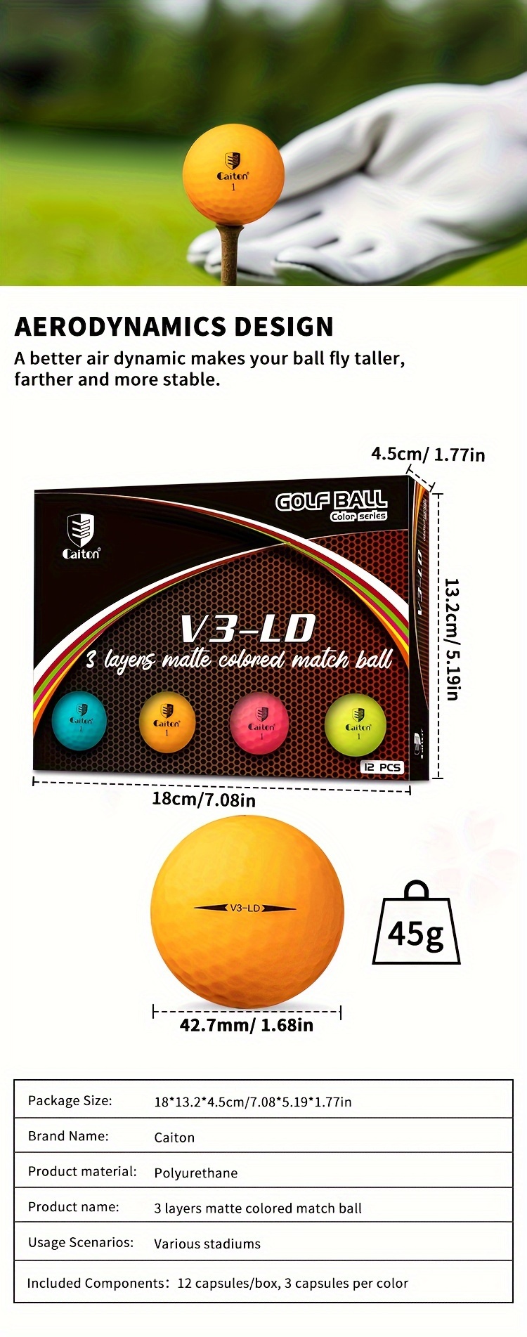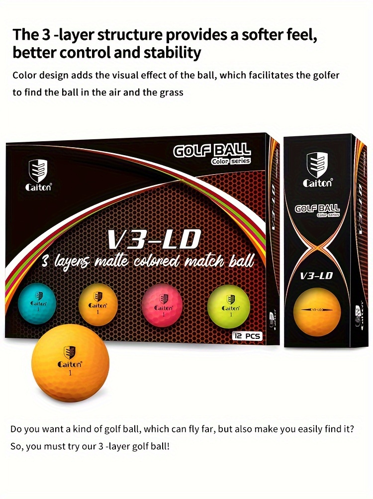 ● Suitable for All Occasions:Whether for daily practi or official tournaments, Caiton colorful matte golf balls meet your needs, with packaging options of 12/3 pcs for your convenien.
