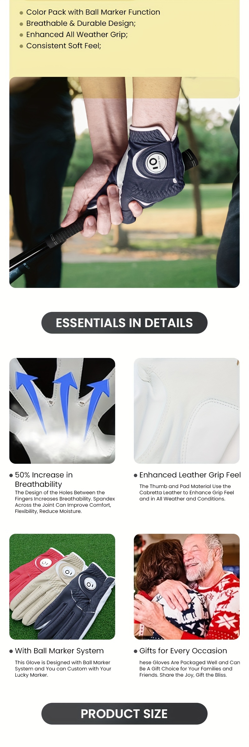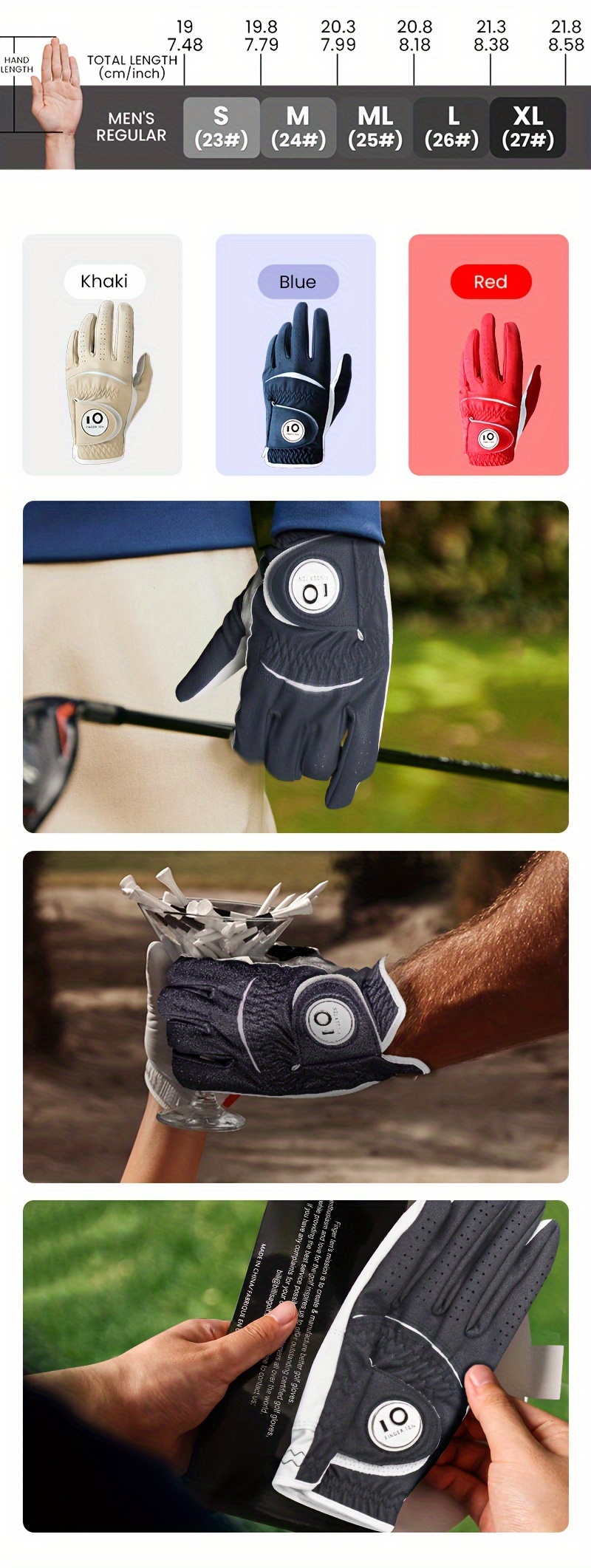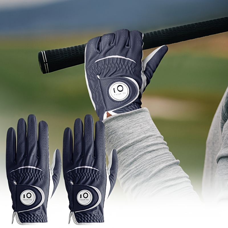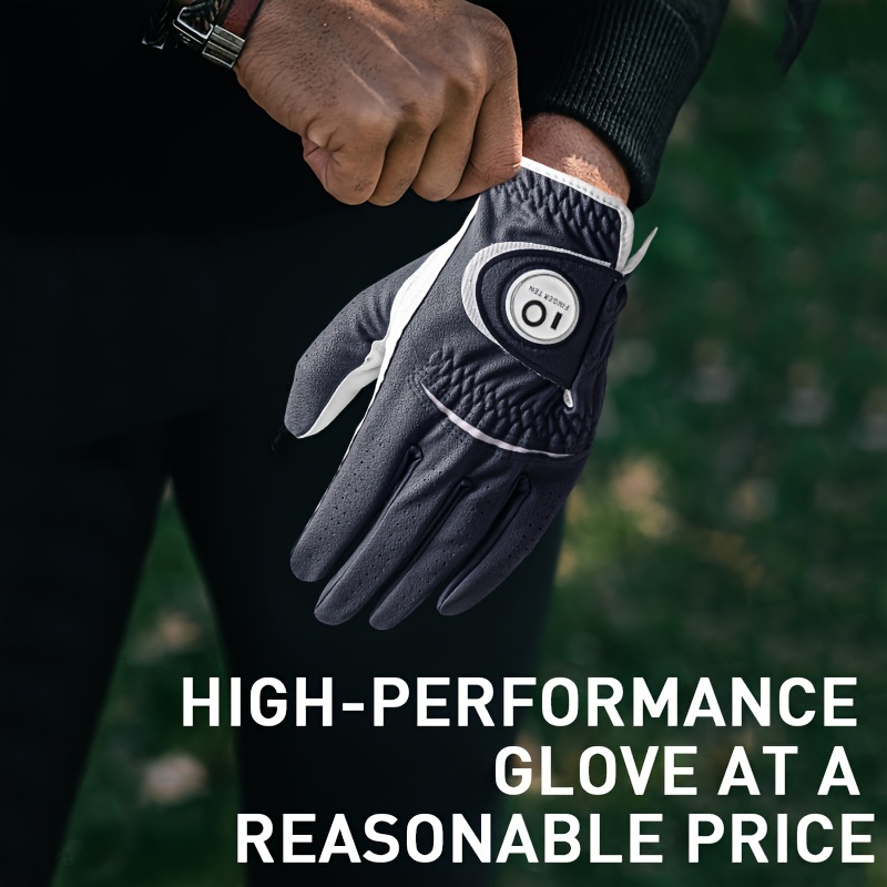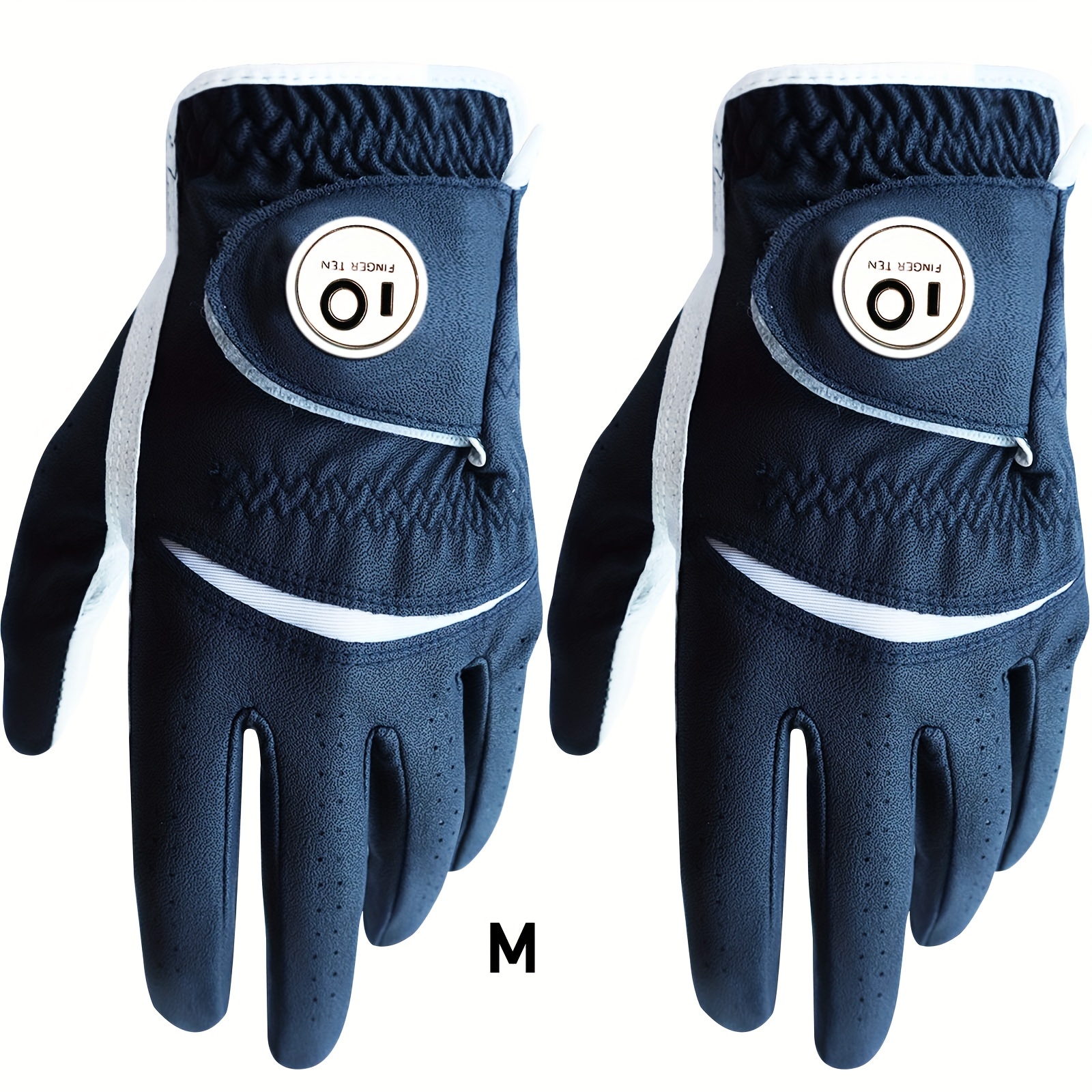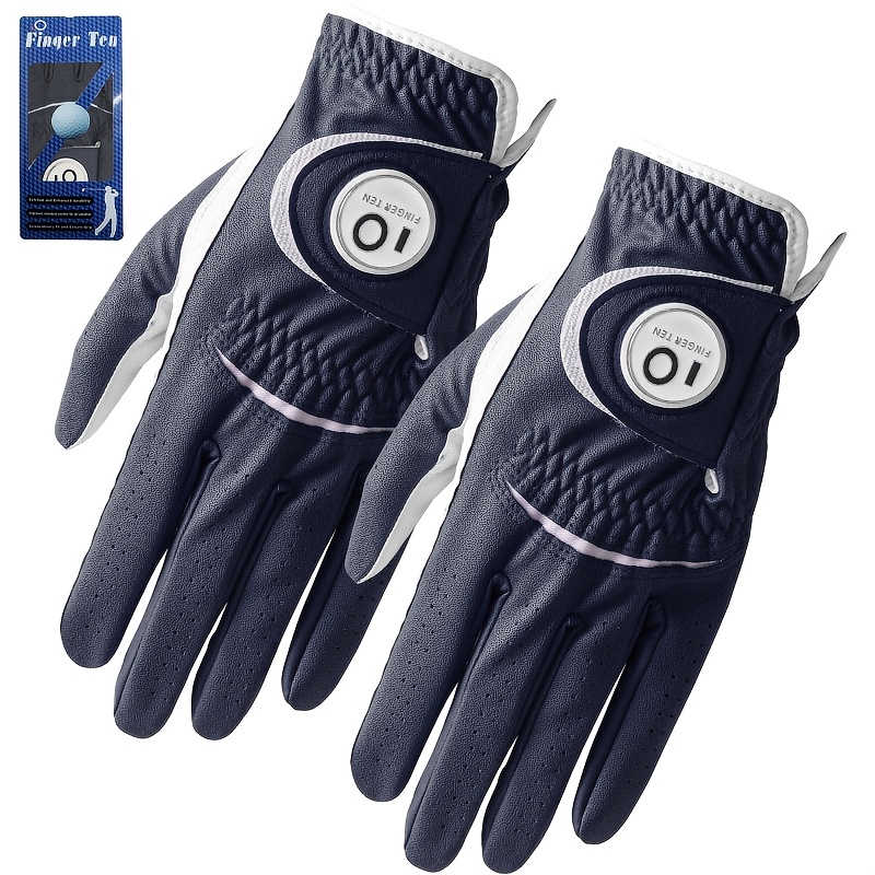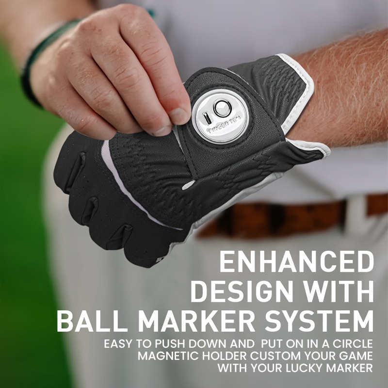 FINGER TEN Golf Gloves Men 2pcs with Ball Marker, Colorful & All Weather Grip Gloves for Serious Performance