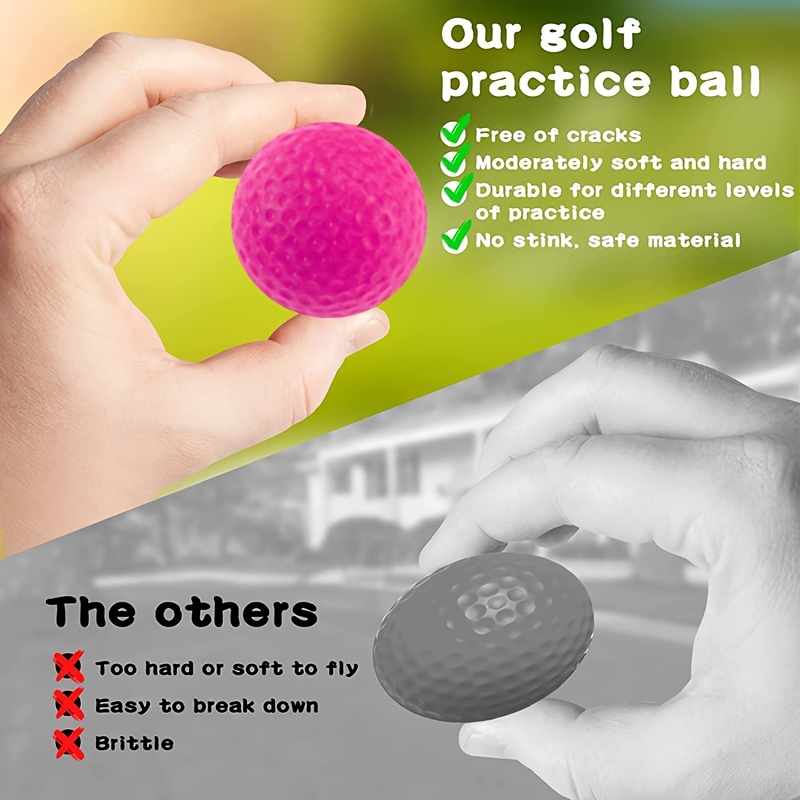 【Indoor and Outdoor Training】Our Golf Practice Balls are perfect for practicing golf in limited space. The dimple texture design allows the balls to mimic real ball flight, but not fly too far. The foam design also serves as a safer, quality alternative to real golf balls. Suitable for indoor and outdoor use.