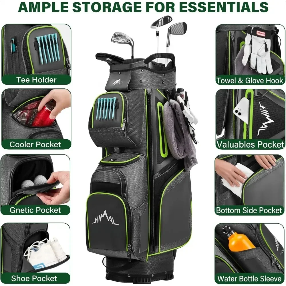 Ample Storage: 14 pockets, including a cooler, valuables pocket, shoe pocket, and magnetic pocket, for easy organization. Magnetic pockets offer quick access, enhancing your golf experience