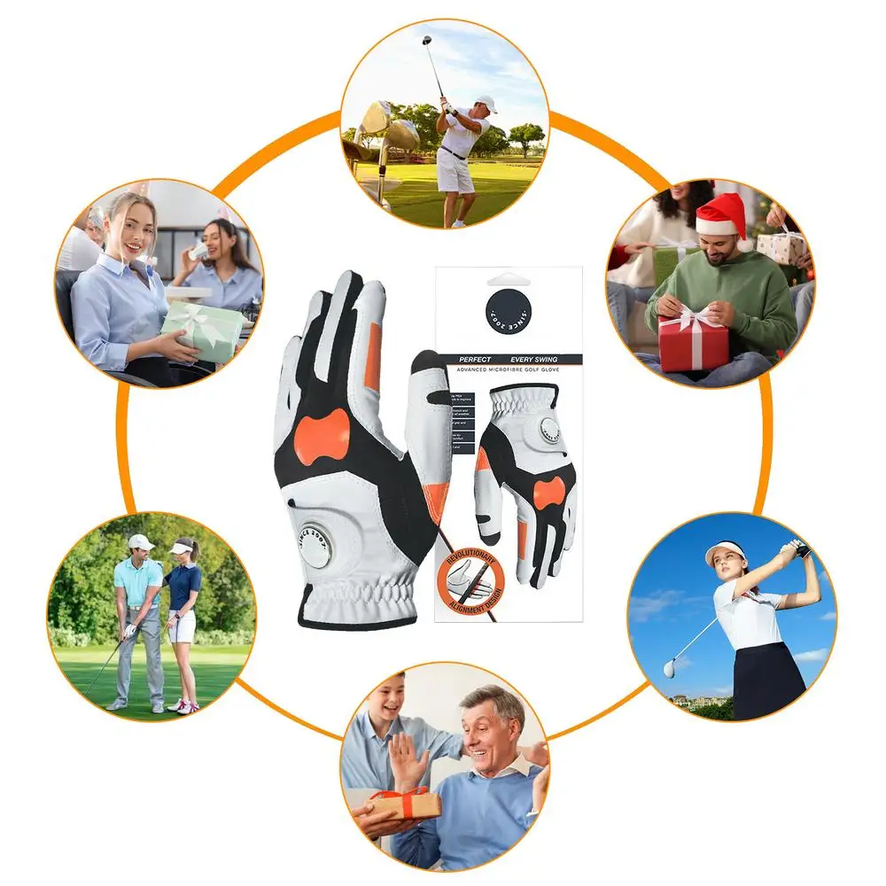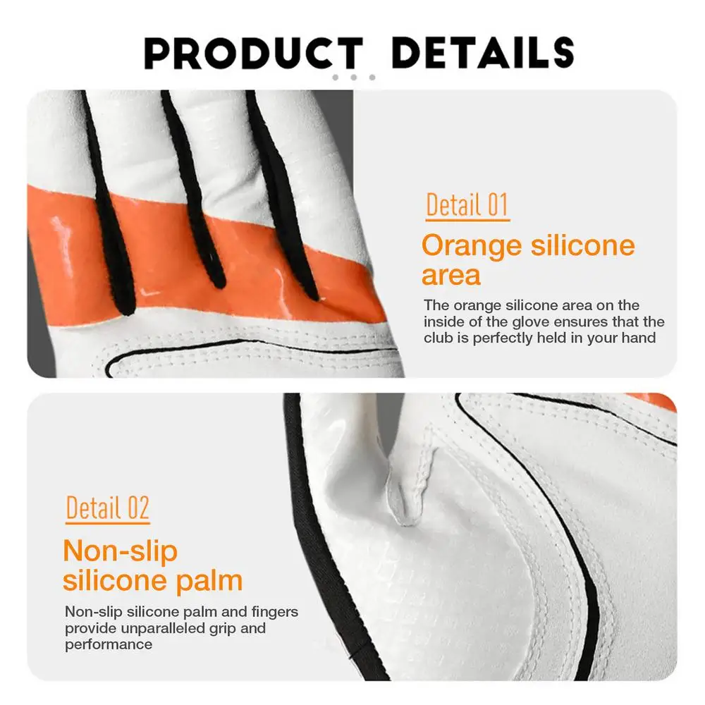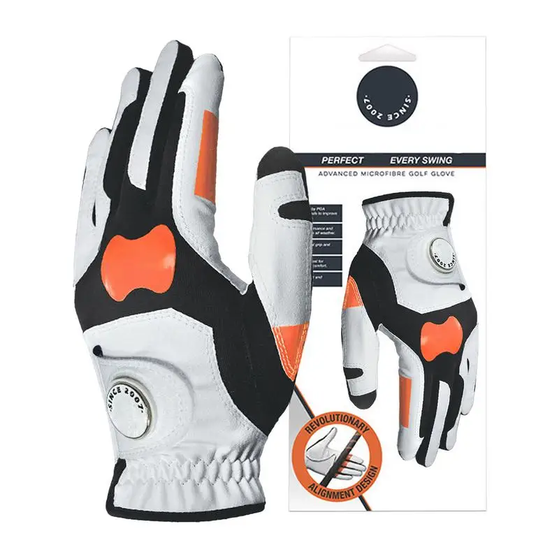 3.All Purpose Design: Ensures the club sits greatly in your hand; this golf glove features a revolutionary grip alignment design, placing the club on the orange area for a great grip every time