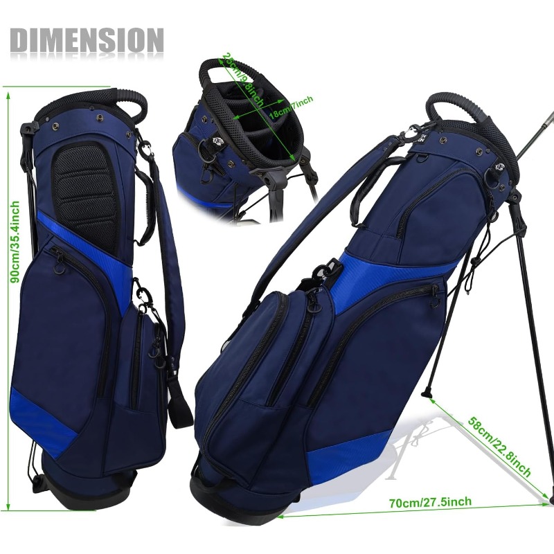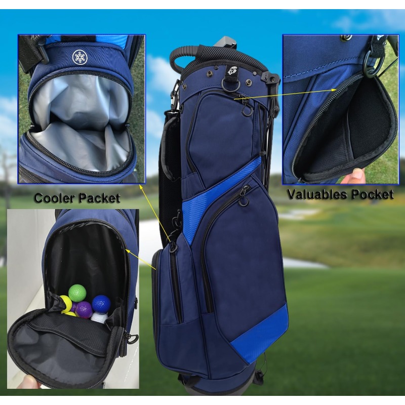 This golf cart bag is designed to be lightweight and easy to carry, featuring a portable top handle and an ergonomic shoulder strap for effortless transport on and off the course. It offers all-weather waterproof protection, made from high-density waterproof fabric that keeps your equipment safe from rain, dew, and splashes, ensuring your clubs and valuables remain dry in any weather. Additionally, it includes multiple dividers for efficient organization of your golf clubs.