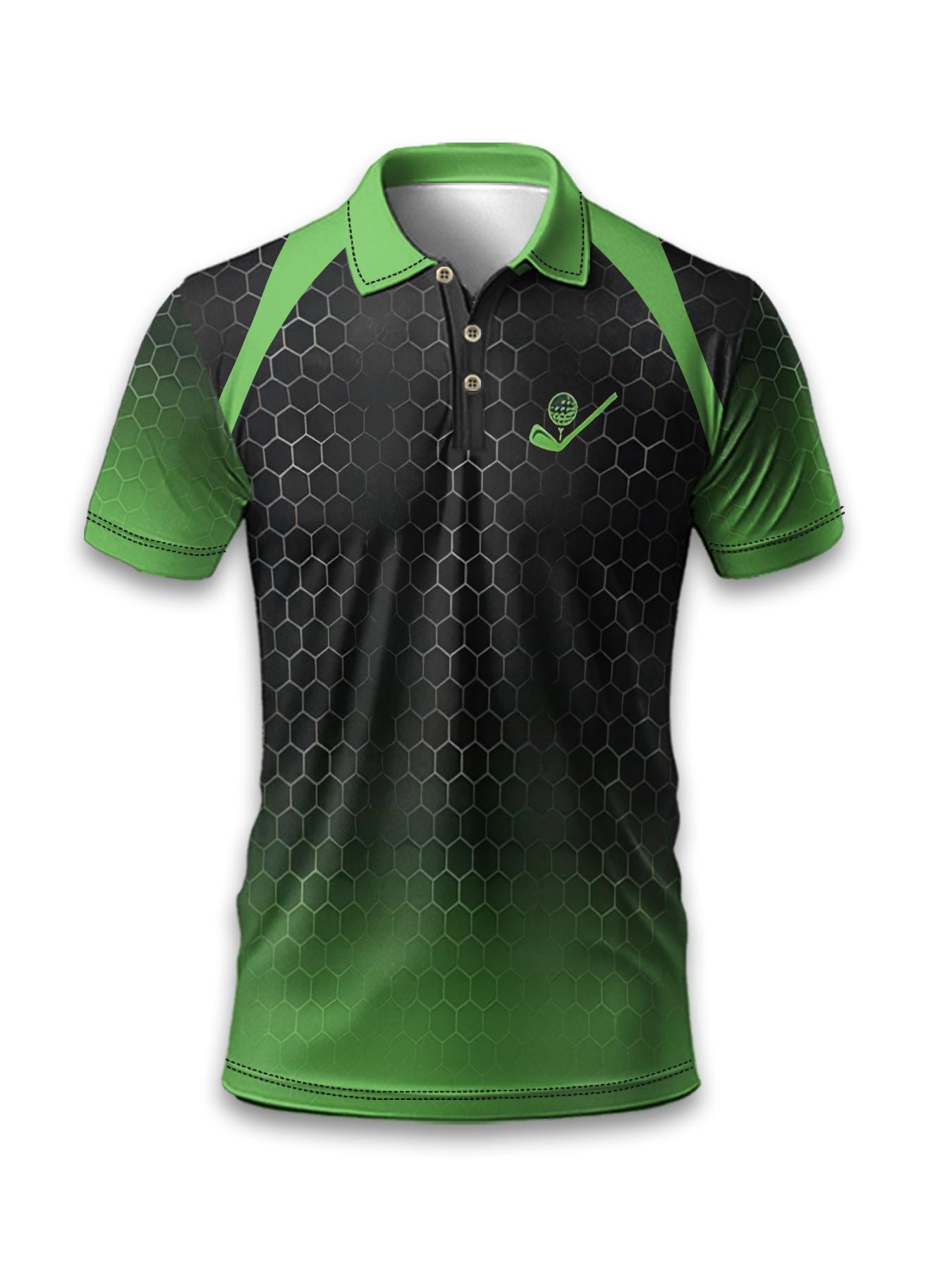 Men’s Short Sleeve Polo Shirt with Gradient Golf Logo Print, Breathable Sports Top