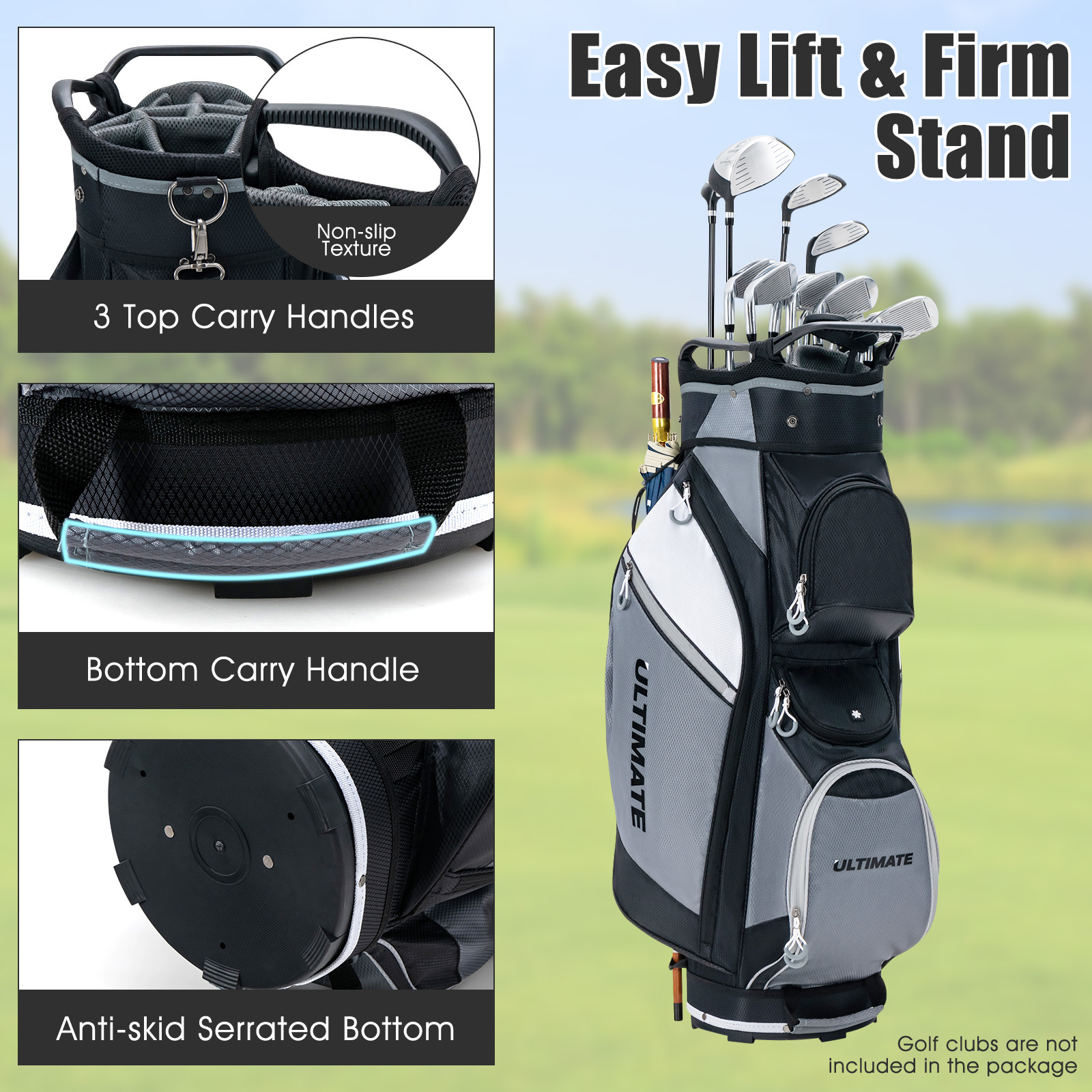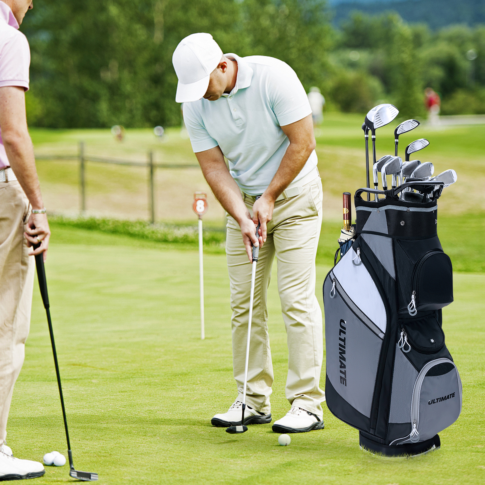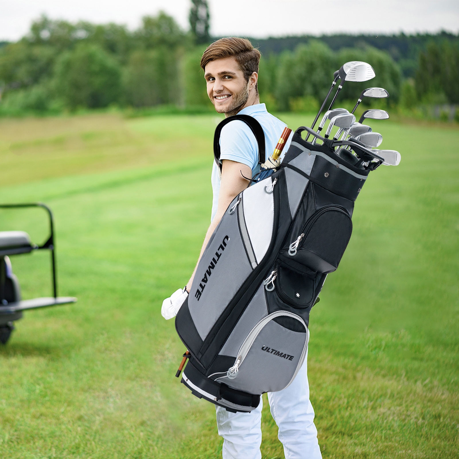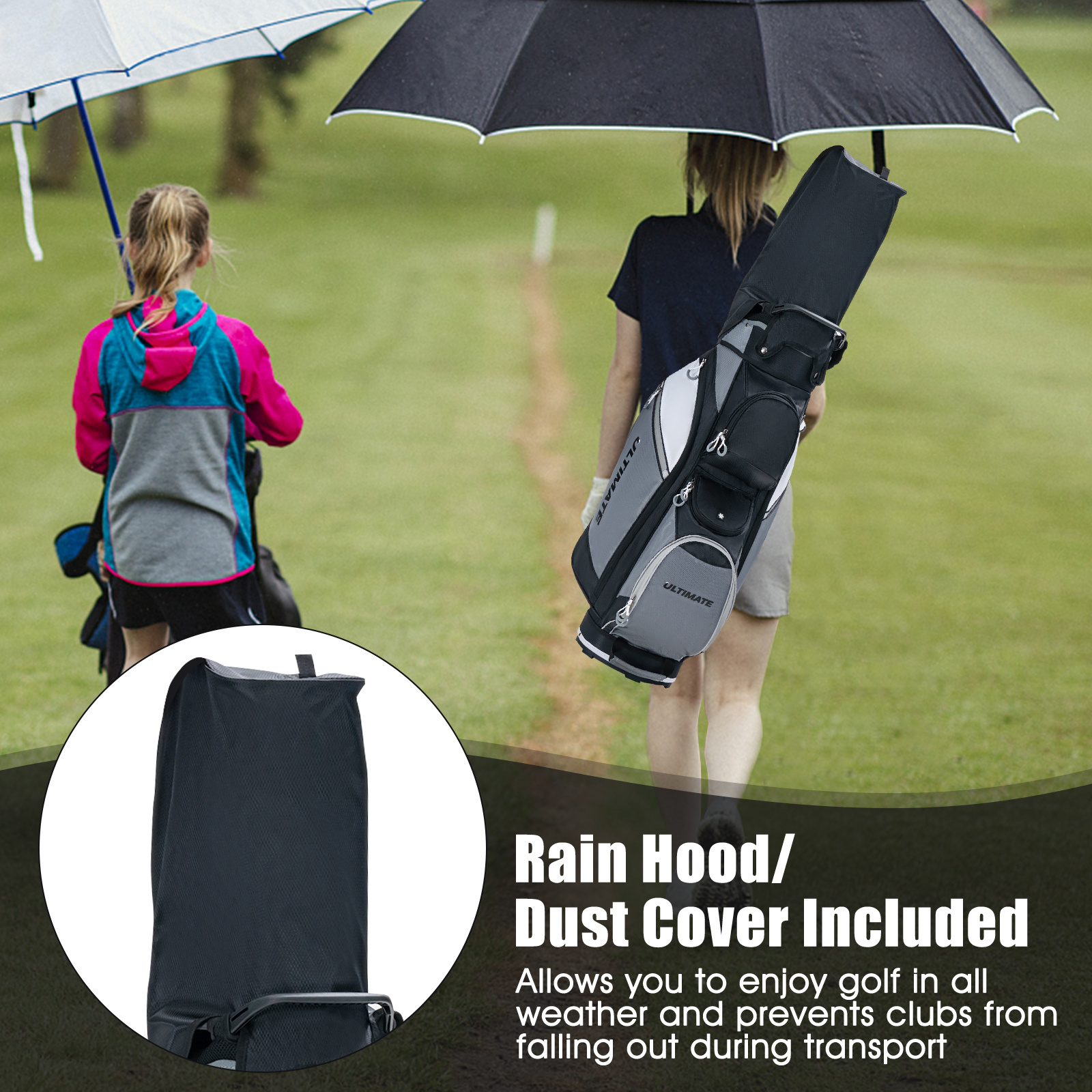 MULTIGOT 10″ 14-Way Golf Cart Stand Bag w/ Cooler Bag Waterproof Valuable Pocket Rain Hood