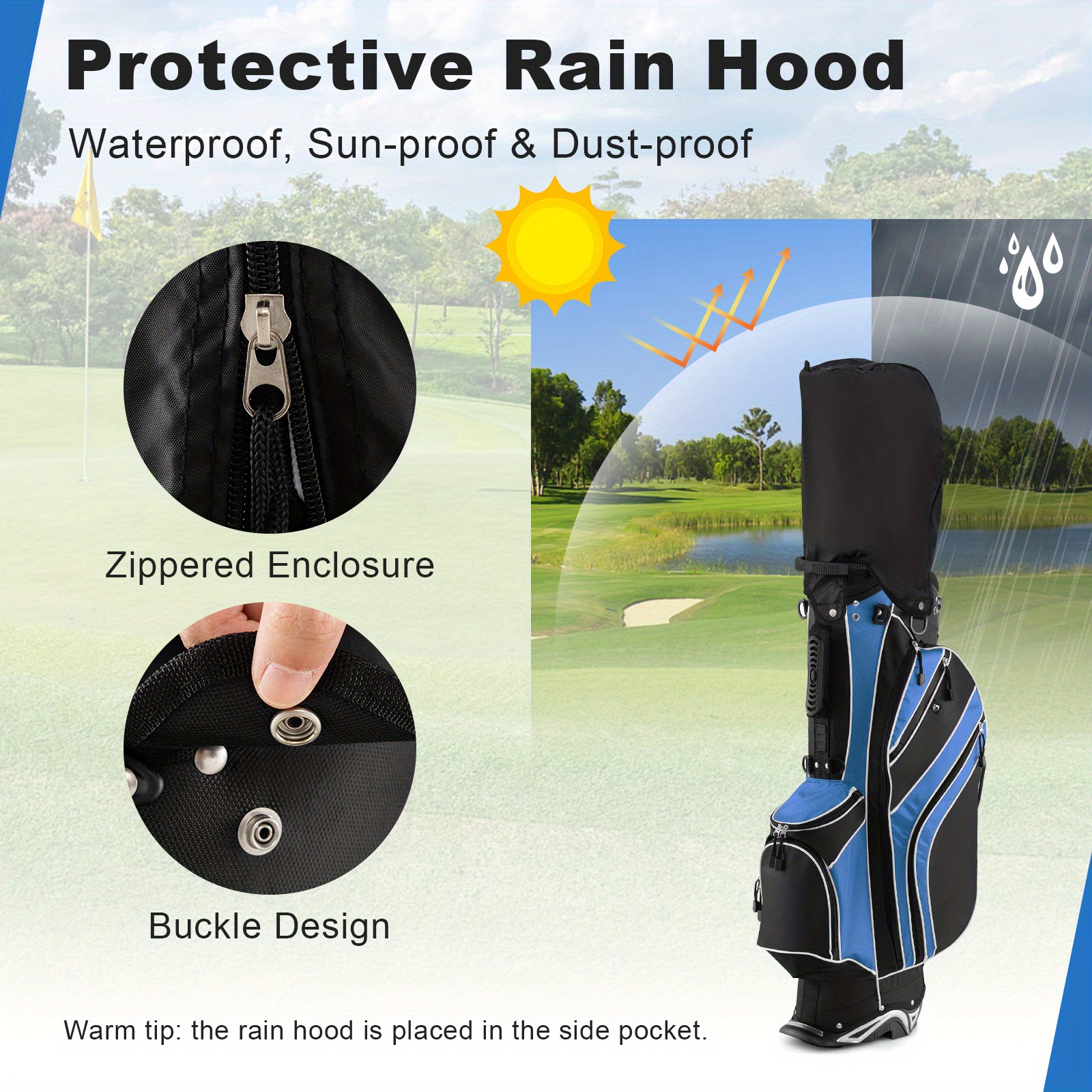 Designed for comfort with ergonomic features. Clear 6-way divider for organizing clubs. Includes a spacious pocket for golf balls, a hook and loop glove holder, and a specially designed umbrella holder. Adjustable padded straps reduce shoulder pressure for a more comfortable carrying experience. Features 8 pockets for secure storage of accessories, gear, and apparel. Automatic stand with anti-slip foot pads ensures stability on different terrains. Weighs around 6 lbs.