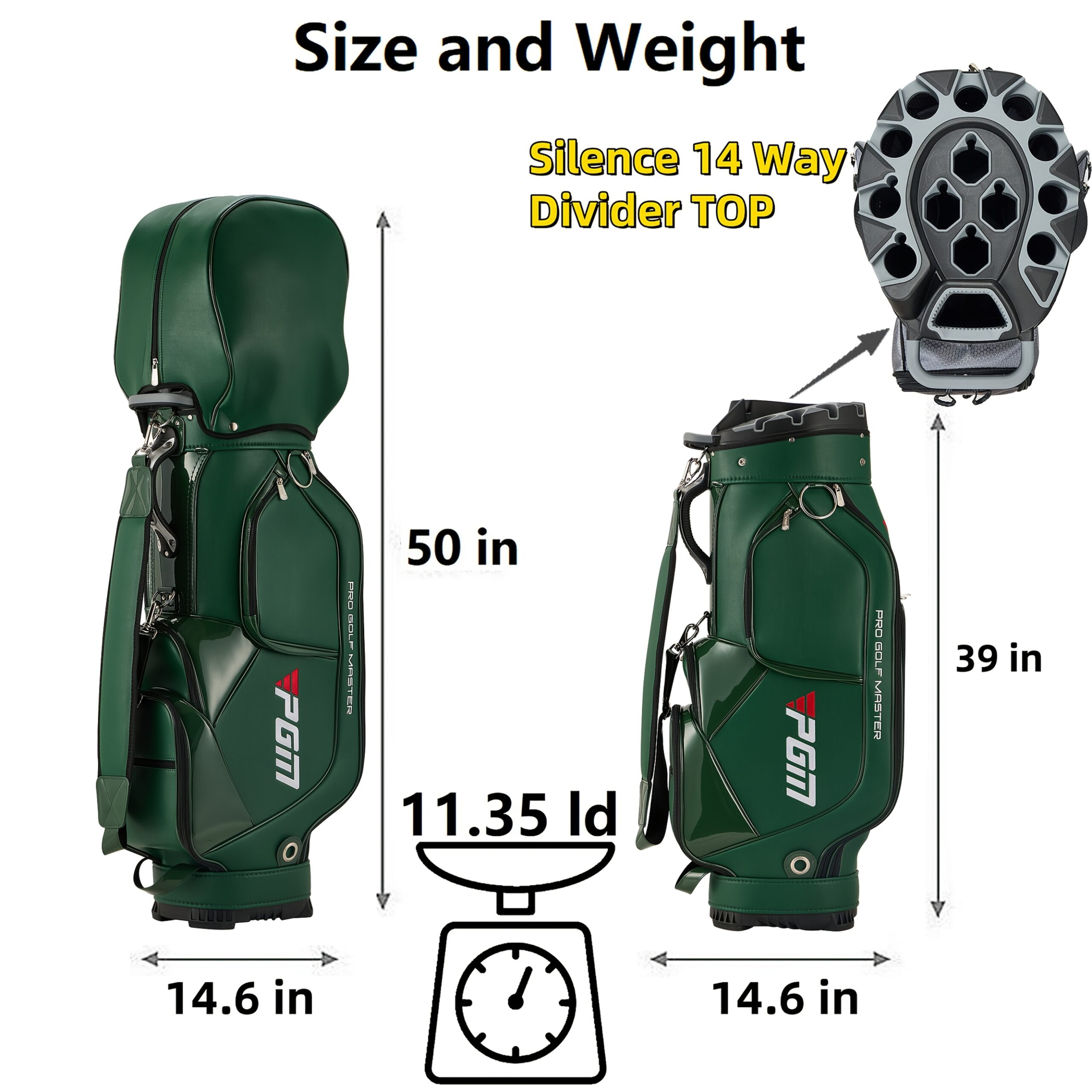 PGM Golf Cart Bag with 14 Way Organizer Divider Top
