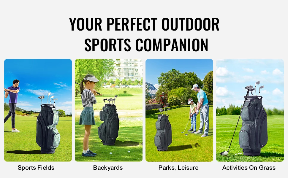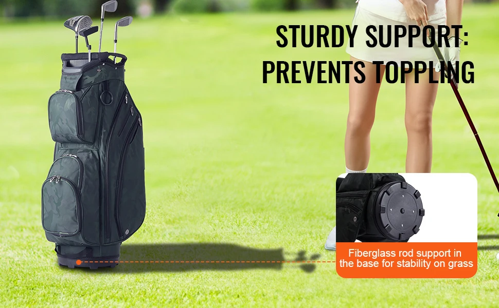• The golf stand bag has a robust base that offers outstanding stability on slopes, grass, and in orchards. It stops the bag from shaking or tipping over, staying firmly by your side during your golf round.