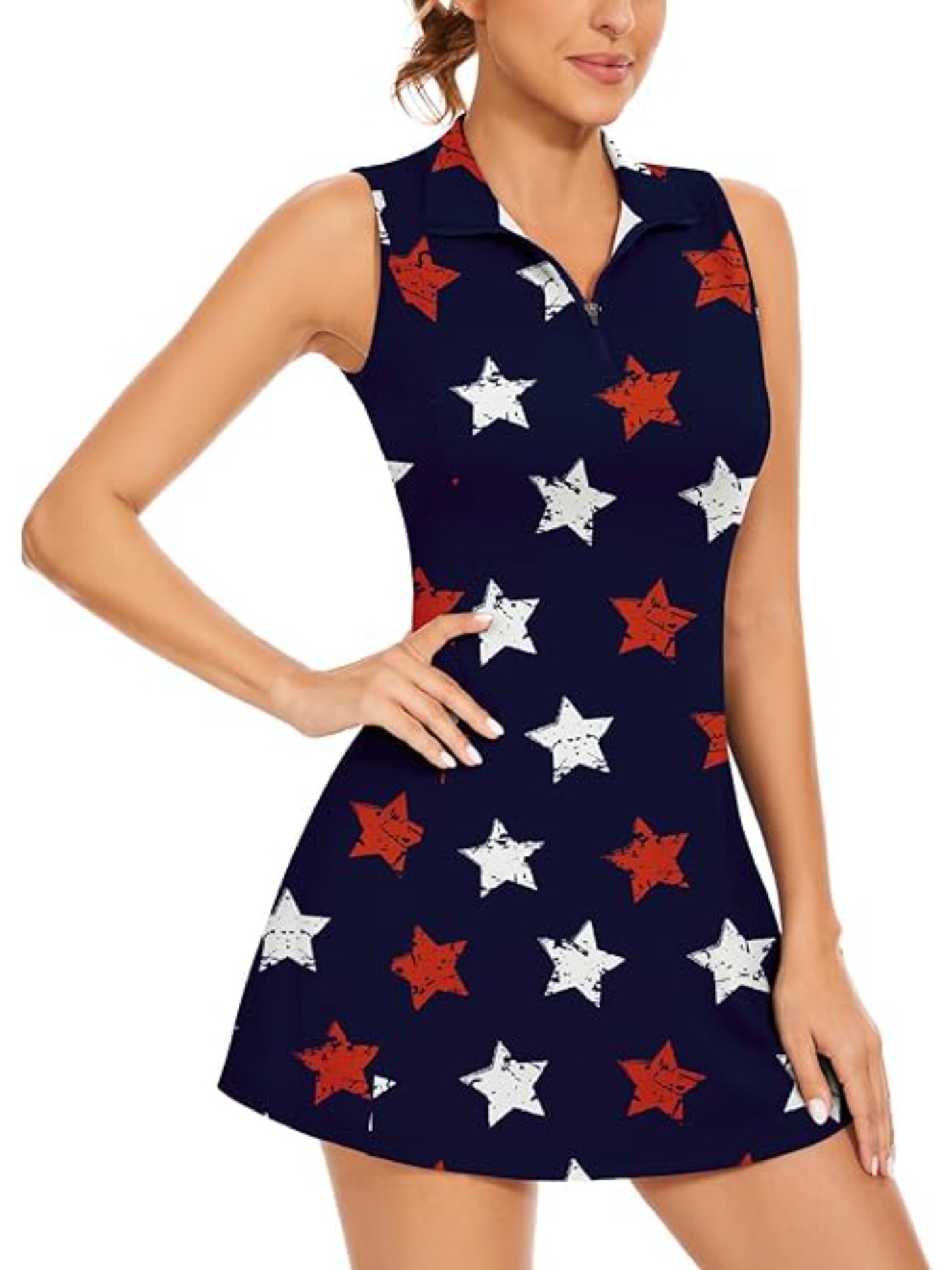 Women’s Star-print Zippered Quick-drying Sleeveless Pocket Tennis Fitness Dress